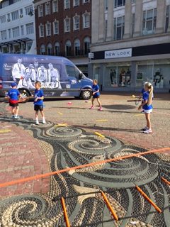 A great day was had by all with lots of interest in the incredible Trophy. A mini tennis court was set up and coaches from West Hants, Victoria Avenue and Southbourne tennis clubs bought some of their young players along and gave demonstrations inviting the general public to have a go. Will Bound also held a Touch Tennis session with the public invited to beat the coach. Bournemouth Gardens held sessions in the afternoon with good numbers attending.